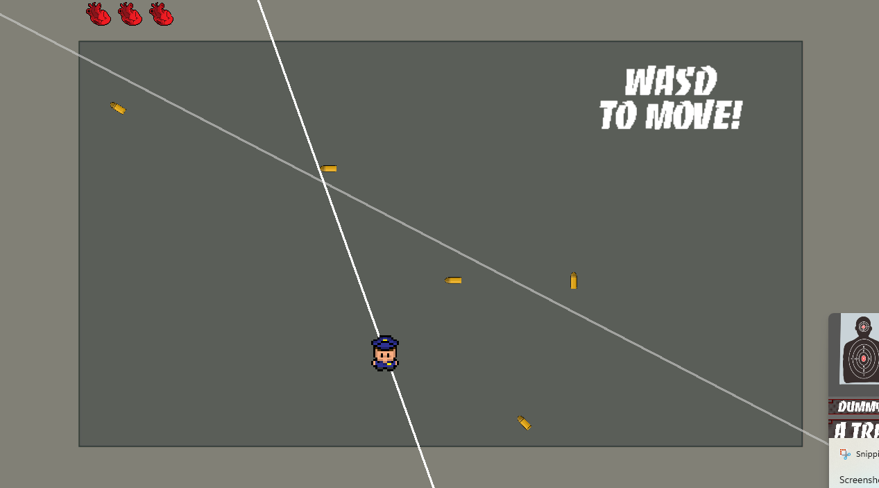 During combat use W/A/S/D to dodge the bullets